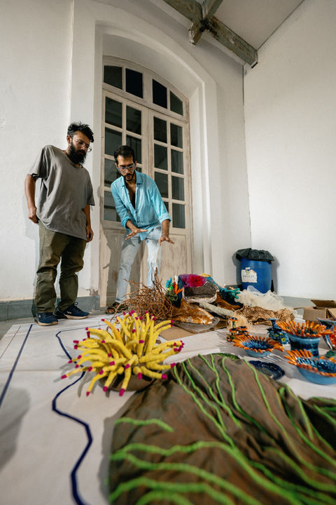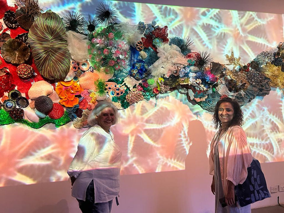 This element is a form of community engagement and conversation around blue carbon, corals and climate by bringing together different practitioners and artists in a participatory, palpable and celebratory curated potluck assemblage of a spectrum of traditional mediums and new age AI and mathematical generated art.